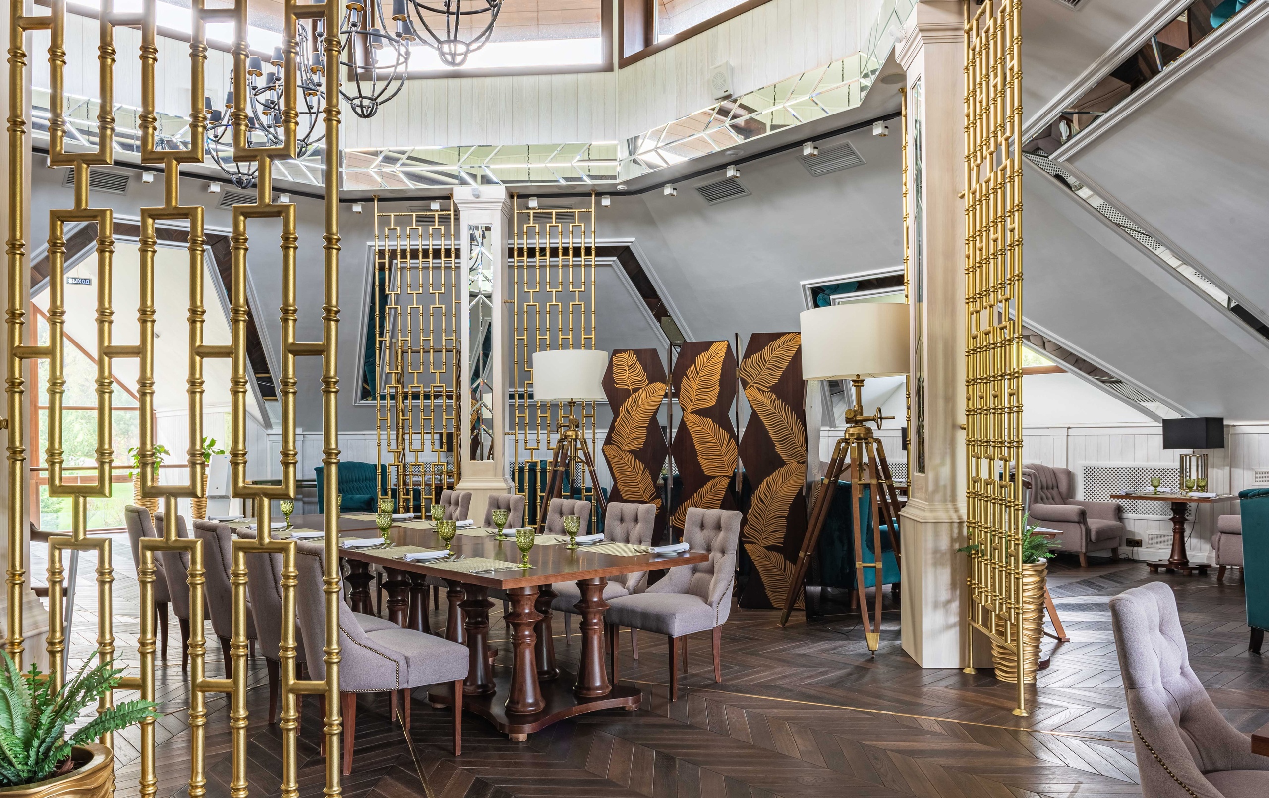 Уютные мягкие кресла и диваны, панорамные окна с прекрасным видом на горы и озеро, а также большой аквариум с живописными рыбками способствуют созданию комфорта и оставляют незабываемые впечатления, добавляя шарму и индивидуальности любому мероприятию, проводимому здесь.