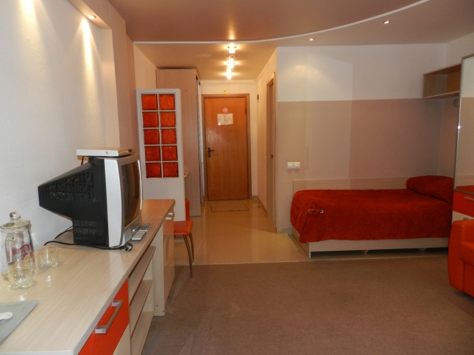 В номерах: 1 комната, холодильник, телевизор, односпальная кровать, телефон, утюг, чайник, столовые приборы, чайная посуда