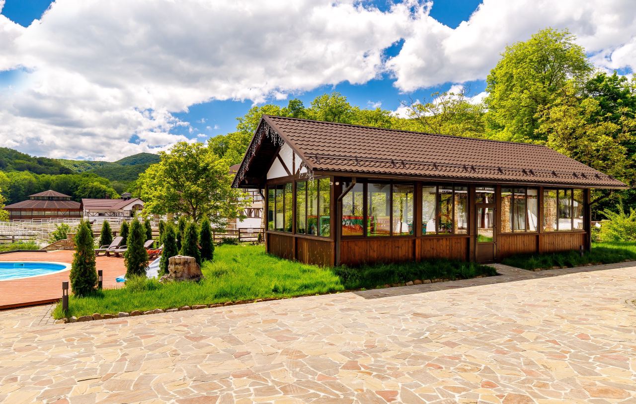 Территория отдыха в парк-отеле «Орлиное гнездо» Горячий ключ