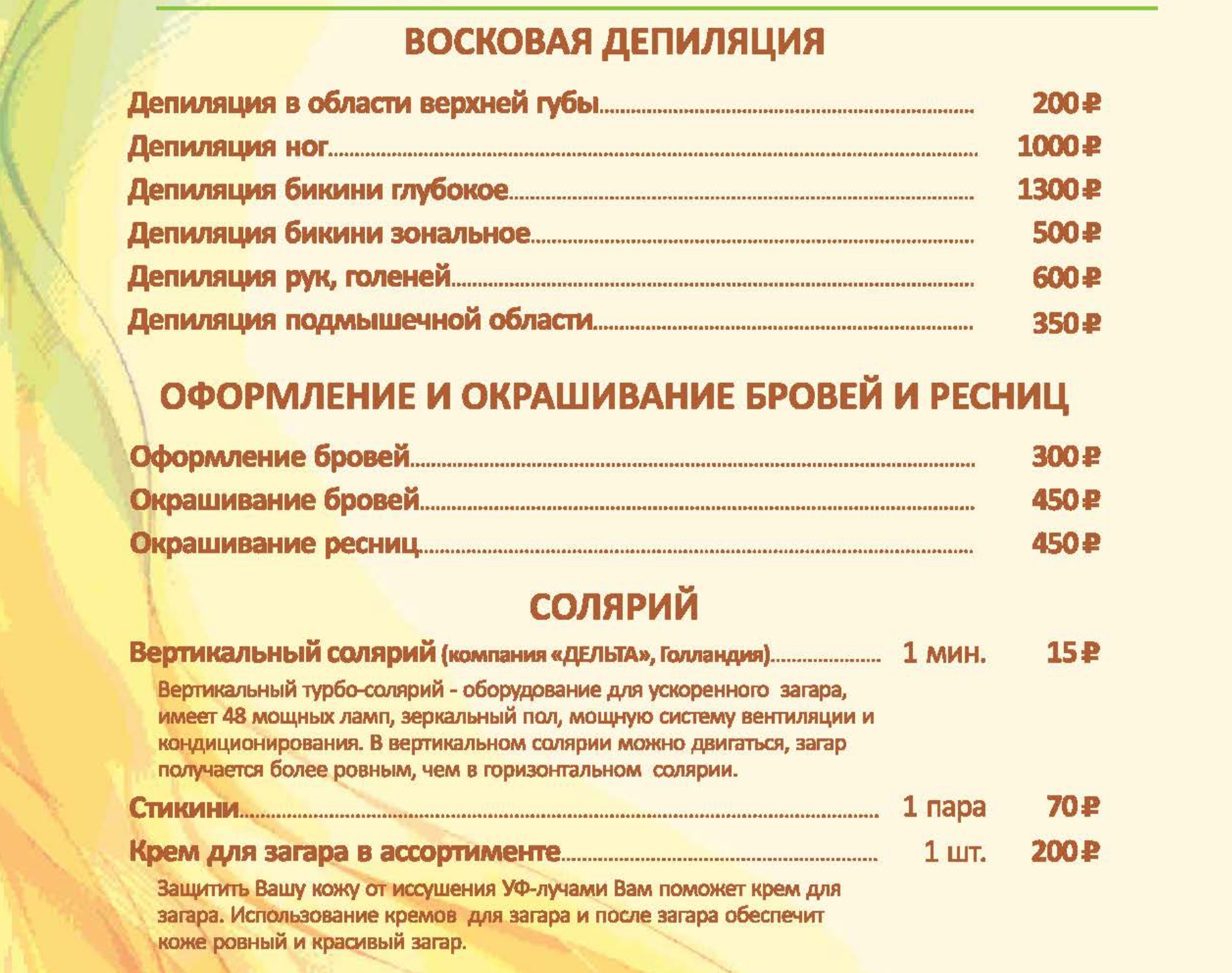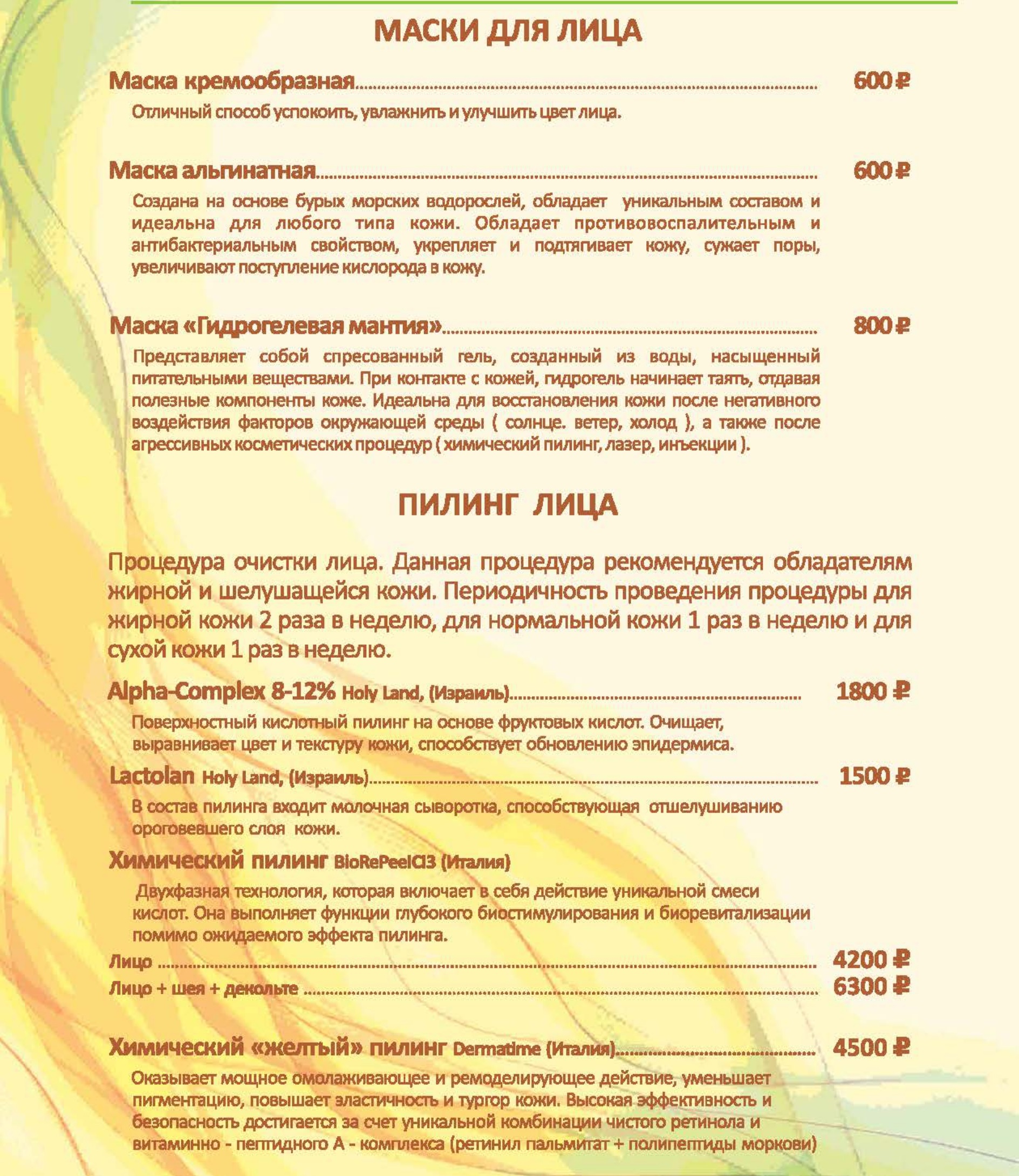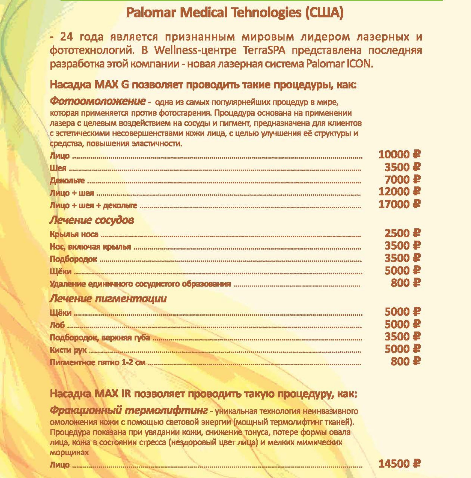 Цены на СПА услуги