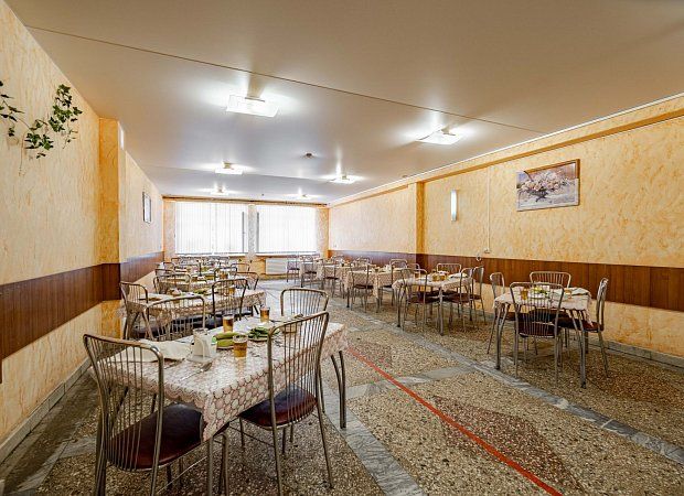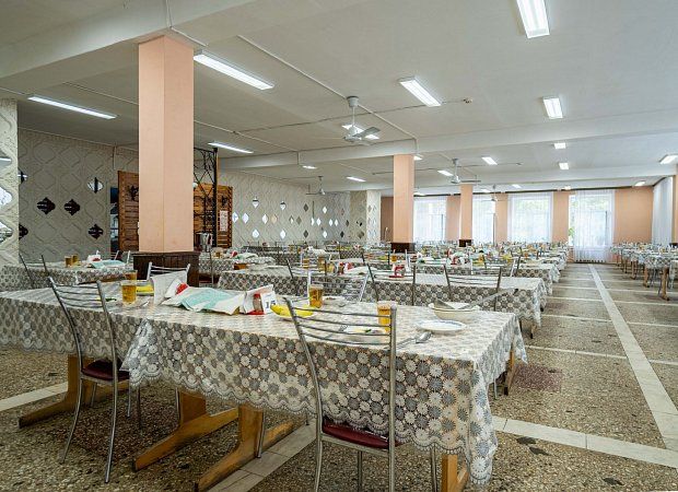 Столовая санатория находится на 2-м этаже двухэтажного корпуса и состоит из трех залов. Организовано 5-и разовое питание по системе «меню-заказ» (три основных приема пищи (завтрак, обед, ужин) и легкий полдник и вечерним приемом кефира). Бланк заказа предоставляют гостям при заезде. Системе питания санатория придается большое значение, ведь правильное и сбалансированное питание – залог успеха в общем оздоровительном процессе.
