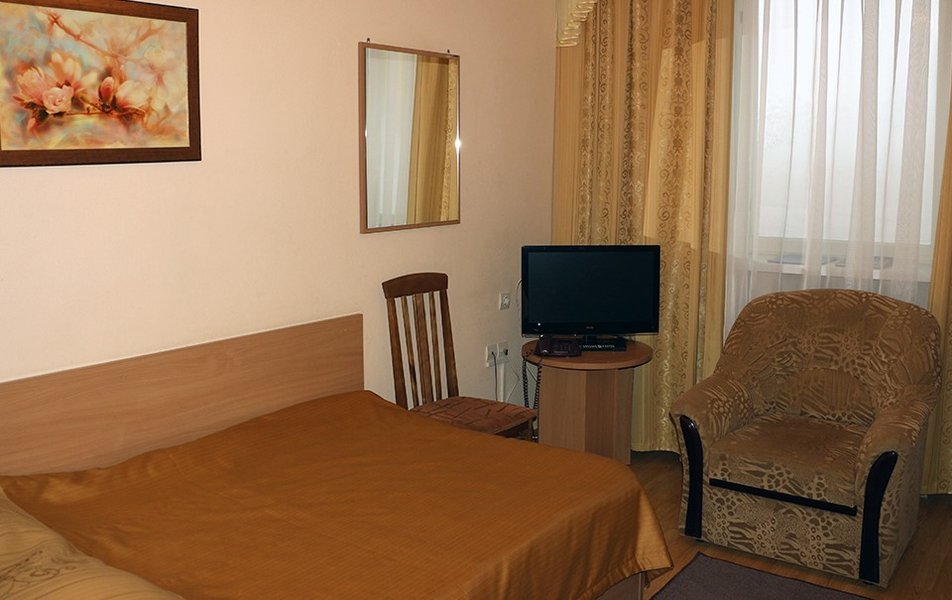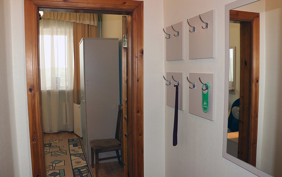 В номере: две односпальные кровати, прикроватные тумбочки, два стула, кресло или диван, шкаф для одежды и личных вещей, зеркало, вешалка для верхней одежды, холодильник, телевизор, телефон, чайник, чайный набор. По просьбе Гостя – сушилка для белья, фен